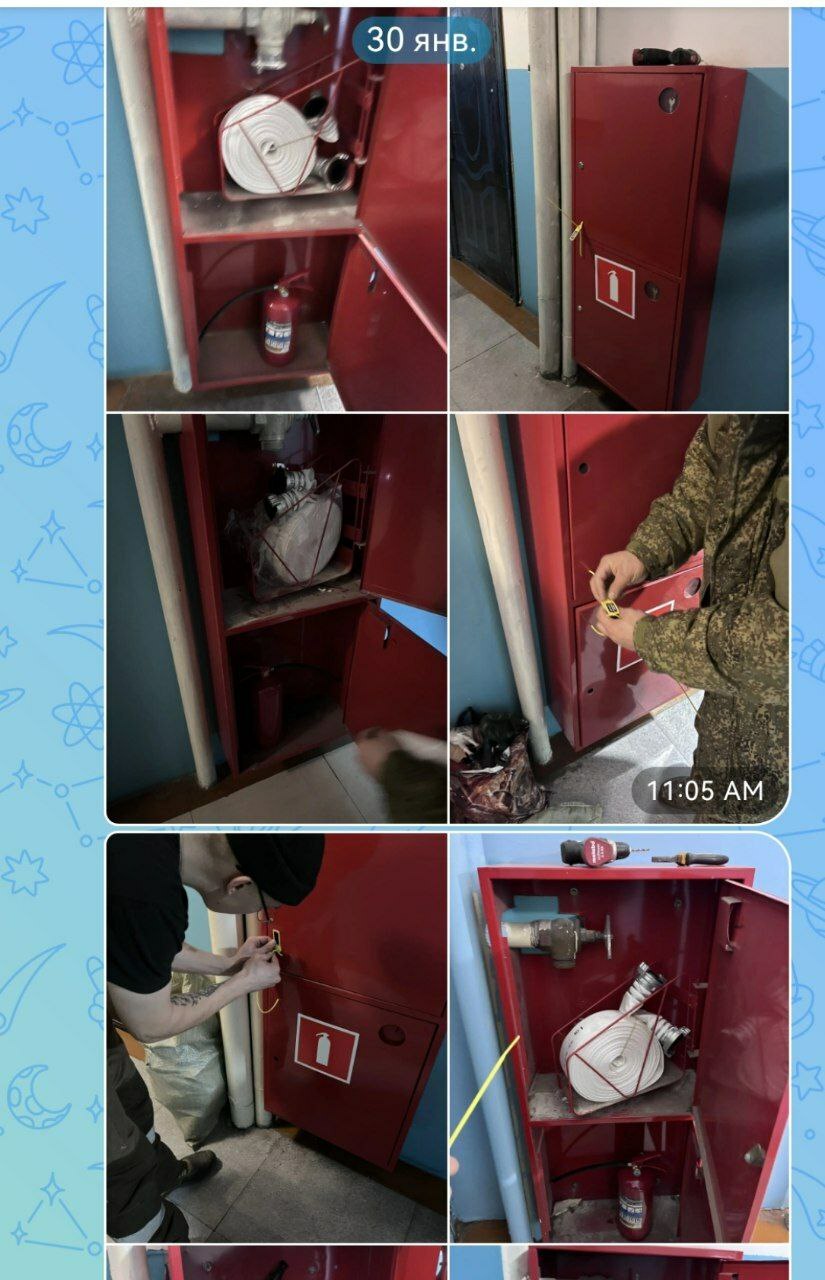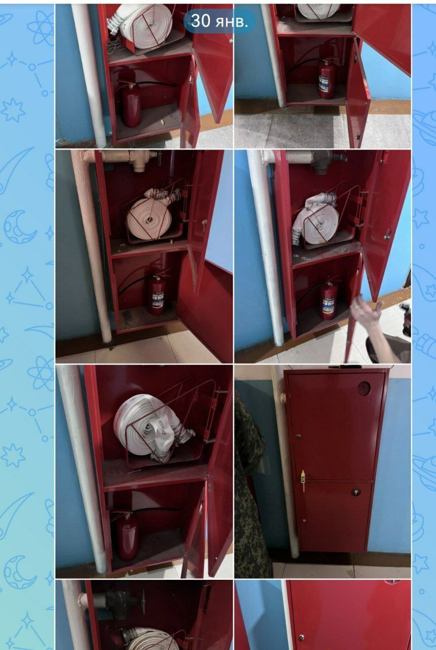 Февраль 2026 - укомплектация пожарных щитов: пожарными гидрантами, огнетушителями опечатка пломбами