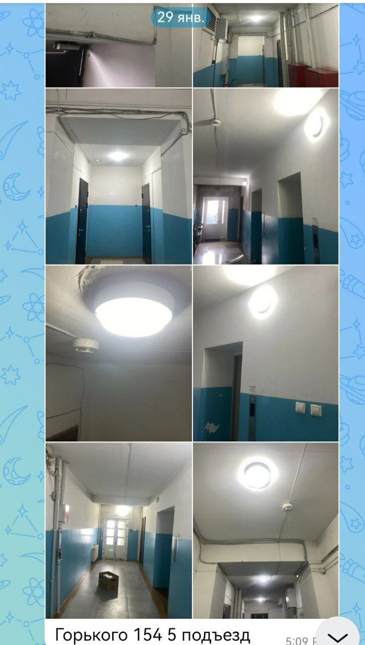 Февраль 2026 - установка светодиодных светильников, плафонов 5 ти подъездов и пожарных лестниц