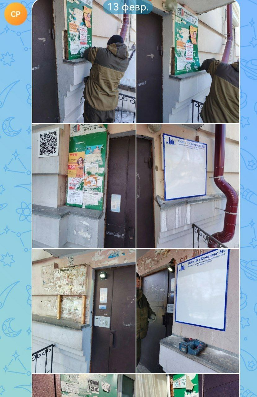 Февраль 2026 -замена уличных стендов. Замена входной двери