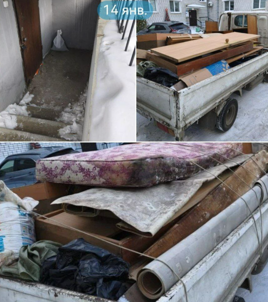 Октябрь 2025- вывоз и очистка совместной контейнерной площадки, замена досок на лестнице